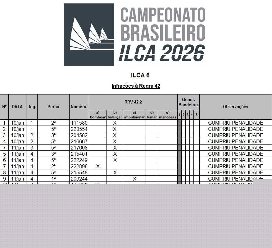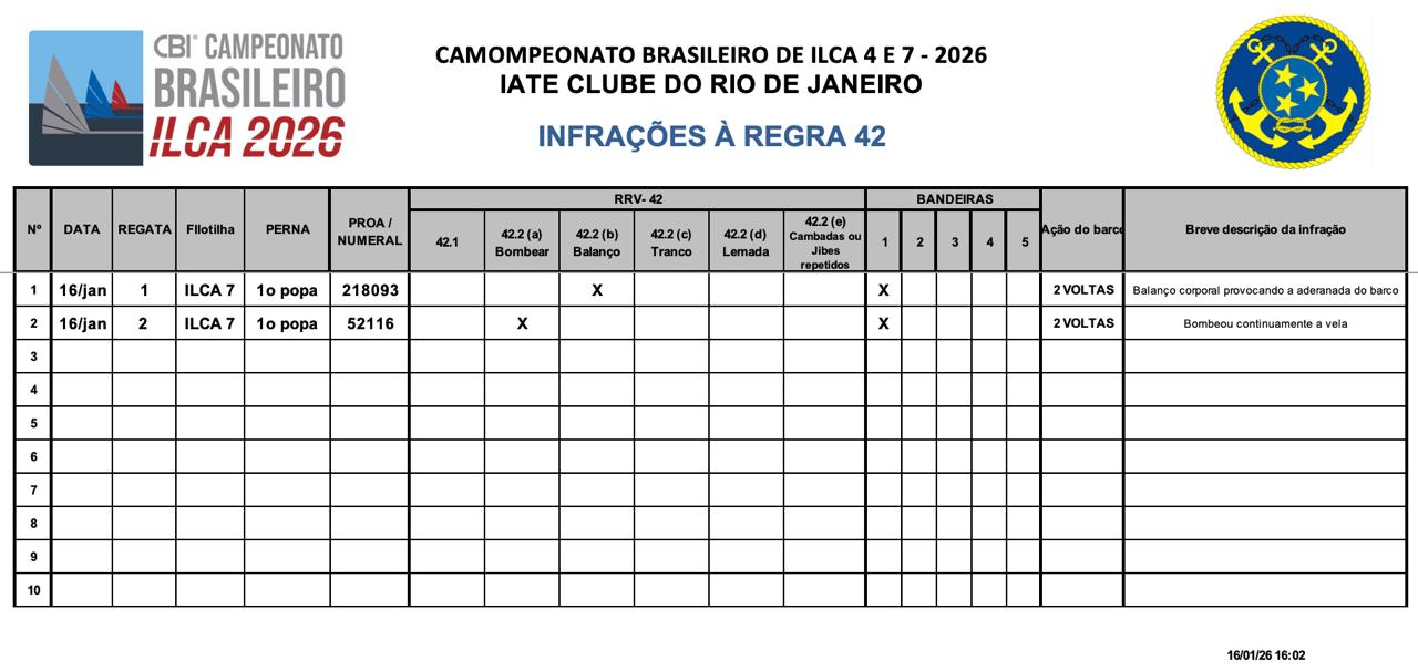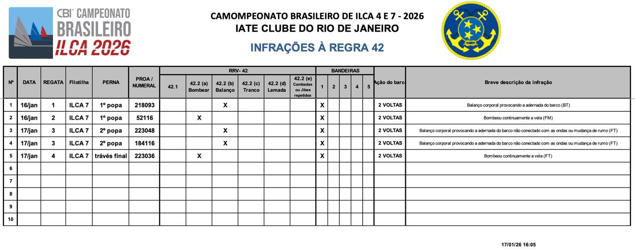 * Infrações a Regra 42 - 19/01/2026