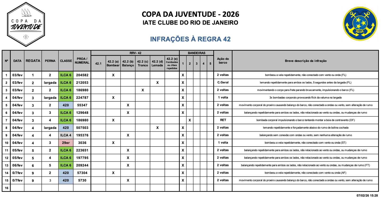 * Infrações a Regra 42 - 7/02/2026