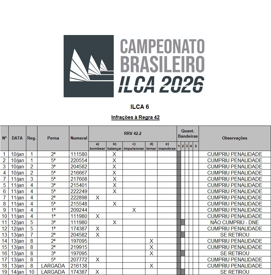 * Infrações a Regra 42 - 19/01/2026