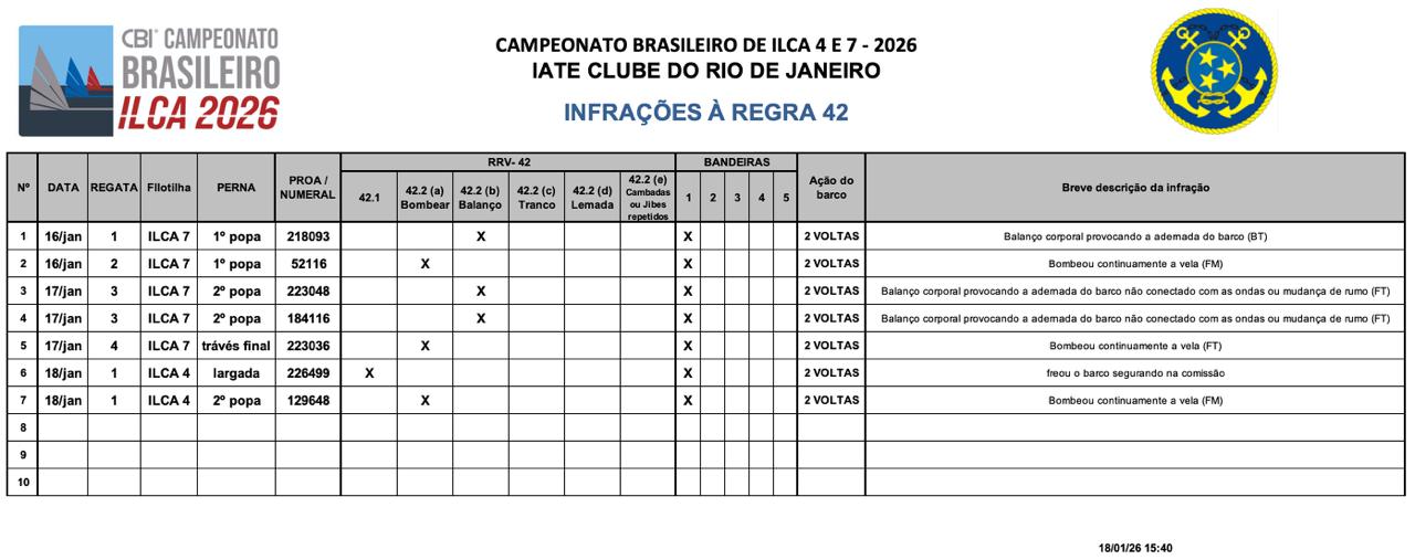 * Infrações a Regra 42 - 18/01/2026
