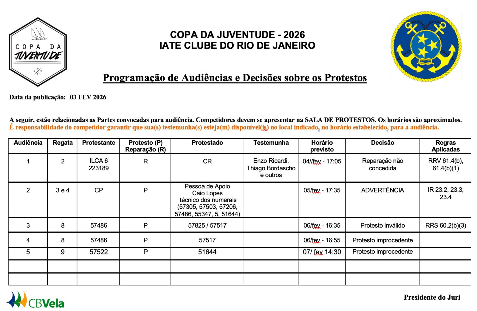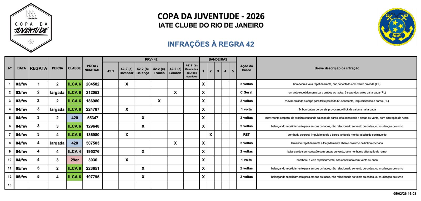 (2 a 8/02/2026) XXXII Copa da Juventude 2026 - ILCA 6 e ILCA 4, 420, 29er e iQFoil (ICRJ)