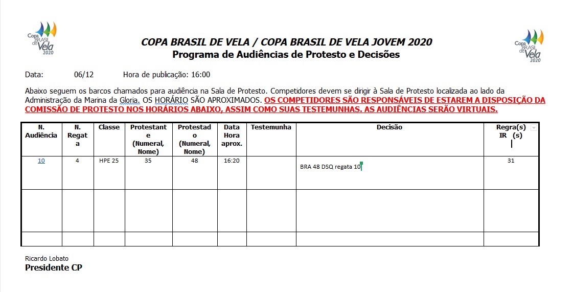 * Programa de Audiências de Protesto e Decisões do dia 4